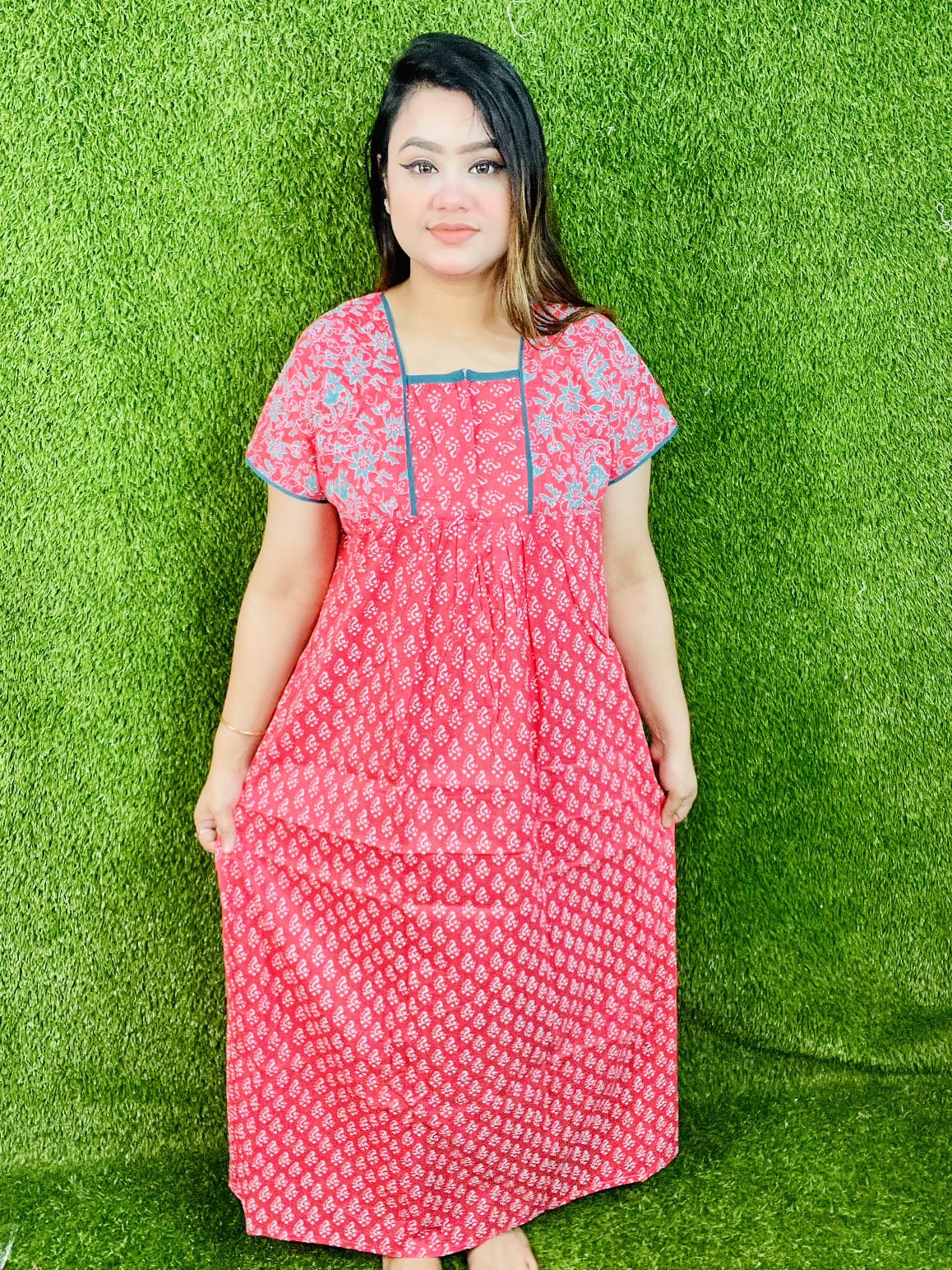প্রিমিয়াম হাফ হাতা ম্যাক্সি-মেরুন